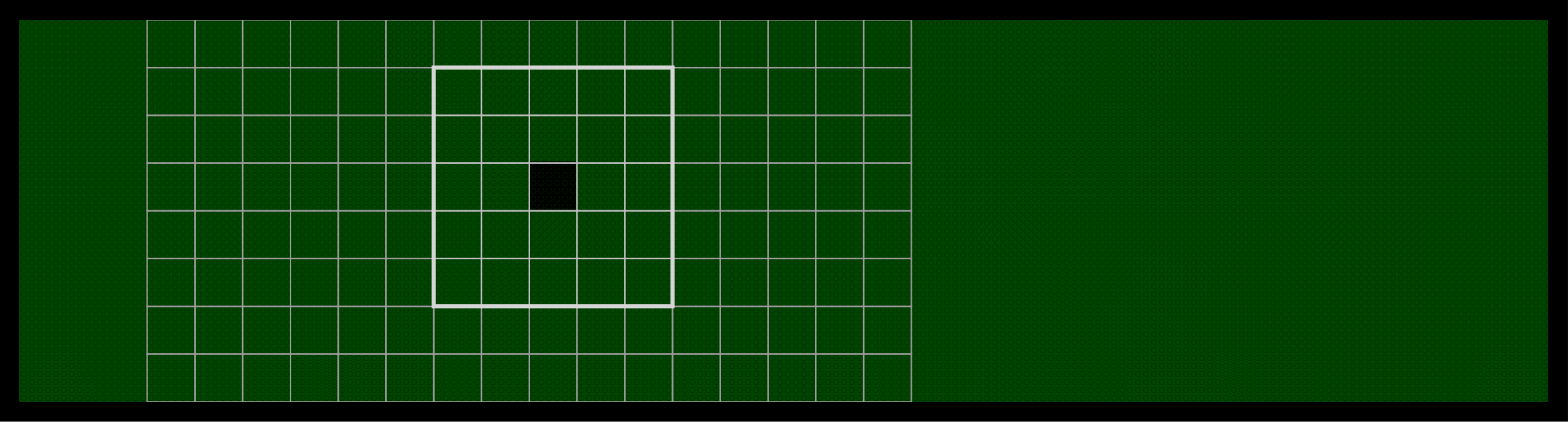 The square flash stimuli are presented on a 50% overlapping grid within the stimulus area. This means adjacent flash positions share half their area, providing higher spatial resolution than a non-overlapping grid.